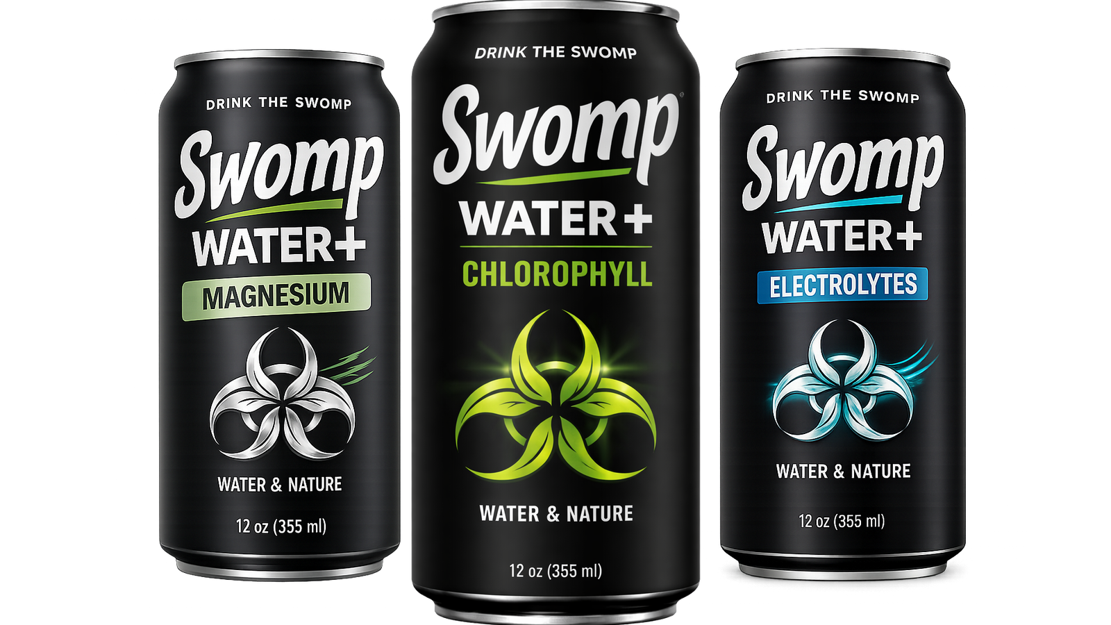 SWOMP Water+ is a functional hydration system built around three clear states: